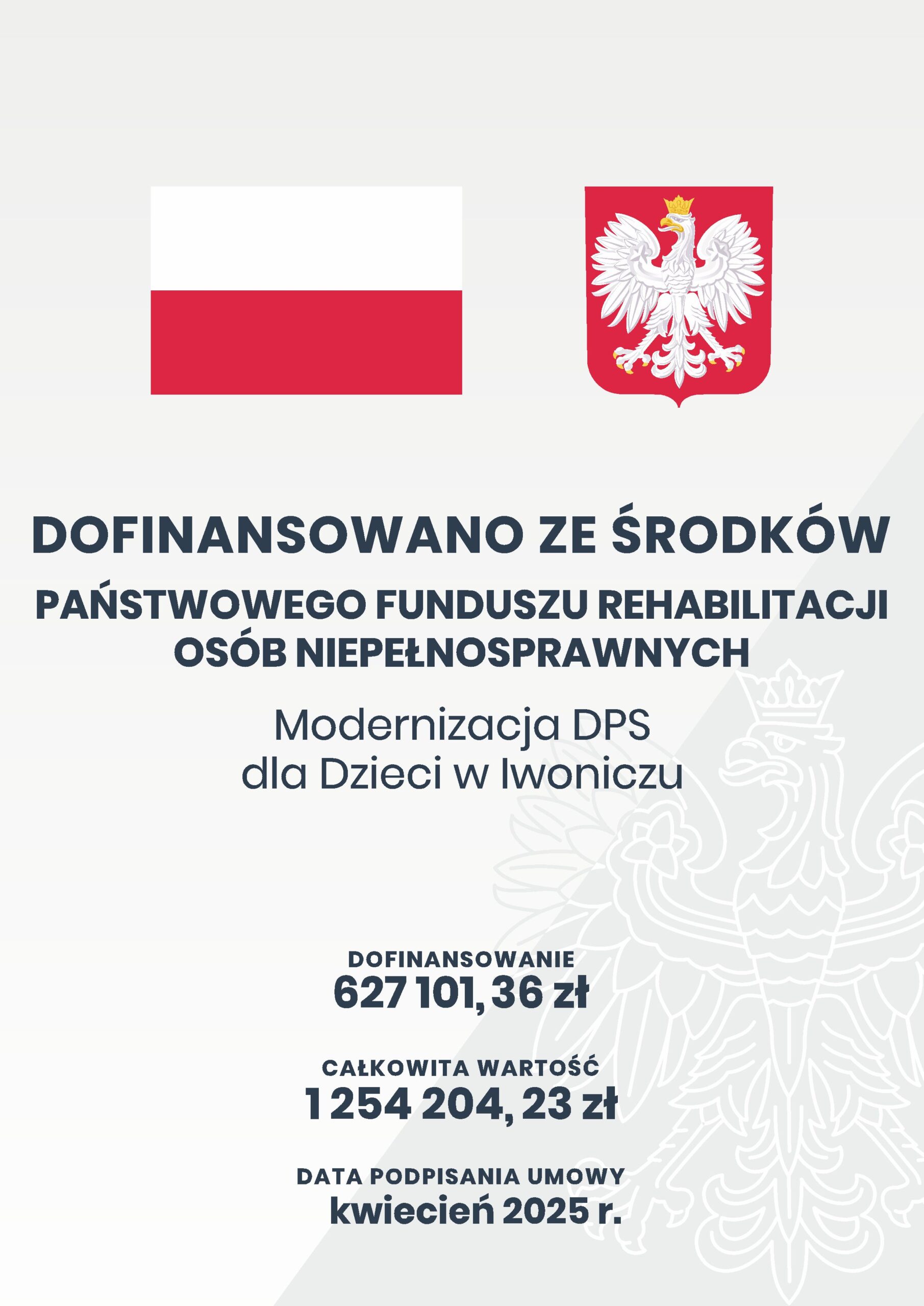 Zgromadzenie Sióstr Św. Feliksa z Kantalicjo – Prowincja Krakowska prowadząca Dom Pomocy Społecznej dla Dzieci w Iwoniczu realizuje inwestycję na podstawie umowy NR 5/OR/RB/2025 Z DNIA 24.04.2025 r. o dofinansowanie robót budowlanych w obiektach służących rehabilitacji osób niepełnosprawnych ze środków PFRON w dyspozycji Województwa Podkarpackiego pn. „Modernizacja DPS dla Dzieci w Iwoniczu”. Zakres prac objętych zadaniem: 1) branża sanitarna i instalacje zewnętrzne: wykonanie instalacji centralnej wody użytkowej, wykonanie instalacji centralnego ogrzewania oraz zewnętrznej sieci cieplnej; 2) branża elektryczna: wykonanie instalacji fotowoltaicznej.